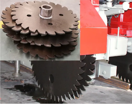 叶片接纳Q460c锰钢(不易变形)+热处置,HR高达52。刀头由胶结资料制成