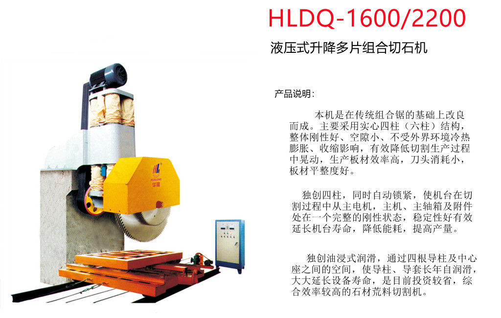 液压式单臂多片锯 HLDQ-1600 合用于切割石块,如花岗岩、大理石等。