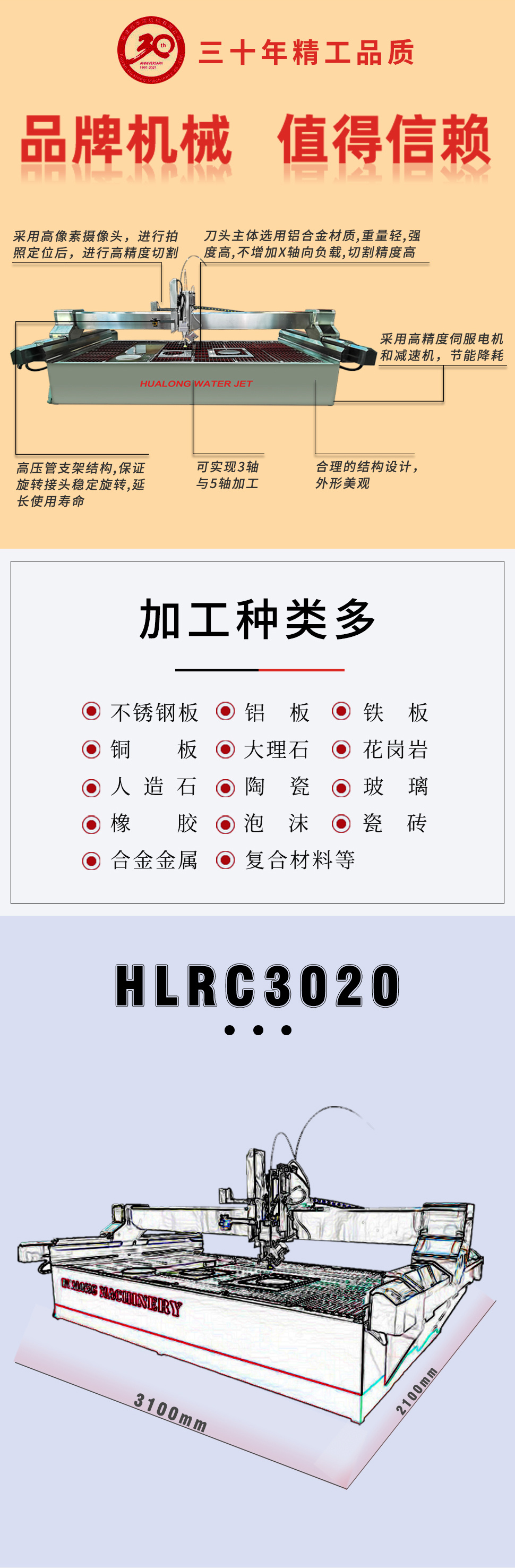 HLWJ2015/3020/4020五轴数控水刀切割机